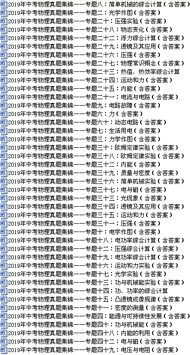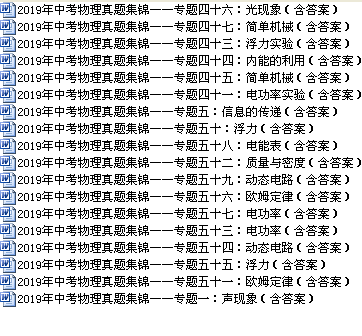 【精挑细选】2019年全国各地中考物理真题集锦(60个专题,Word版,含解析)