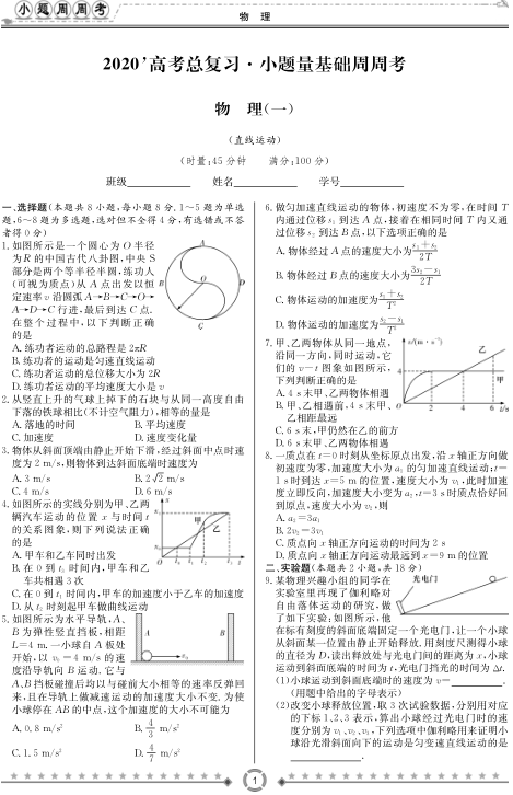 【小题周周考】2020届高考总复习小题量基础周周考-物理(pdf版,48套,含答案)