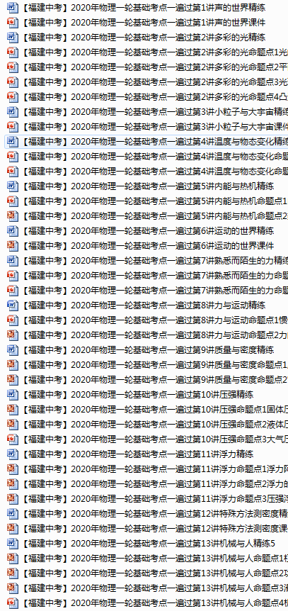 【中考宝典】福建省2020年物理一轮:基础考点一遍过全套课件、试卷(打包60套)