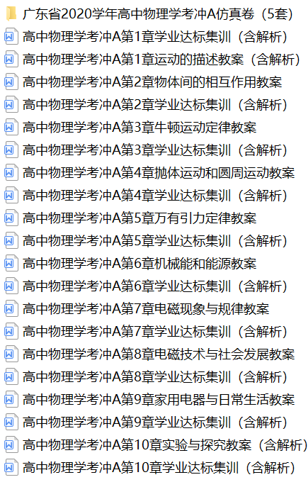 广东省2020学年高中物理学考冲A:全套教案与学业达标集训(25套打包,含答案)